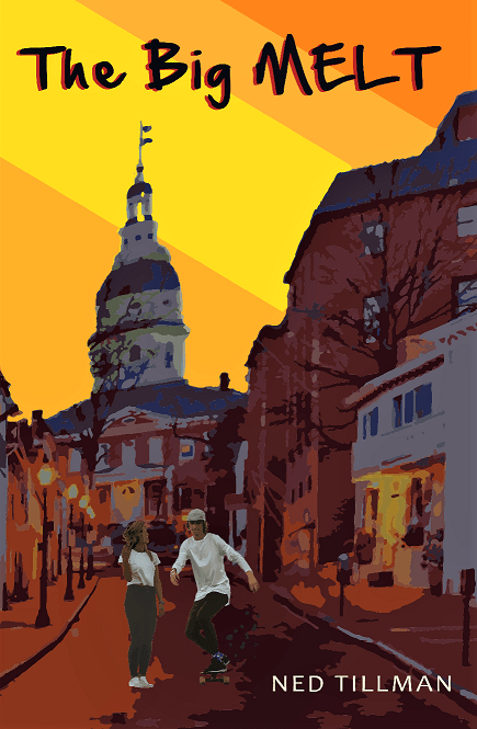 The Big Melt by Ned Tillman, shows us a “typical American town” a few years into the future. The main characters, a teen boy and girl (who begin as friends and end up falling in love), show us how life is changing rapidly as the area reaches a climate tipping point and begins experiencing prolonged excessive heat – melting streets, killing plants, drying up sources of water, creating hurricane-force winds. The teens come to understand that even if they can’t fix all problems, they can make a difference in people’s lives, and that moving forward with purpose is empowering.