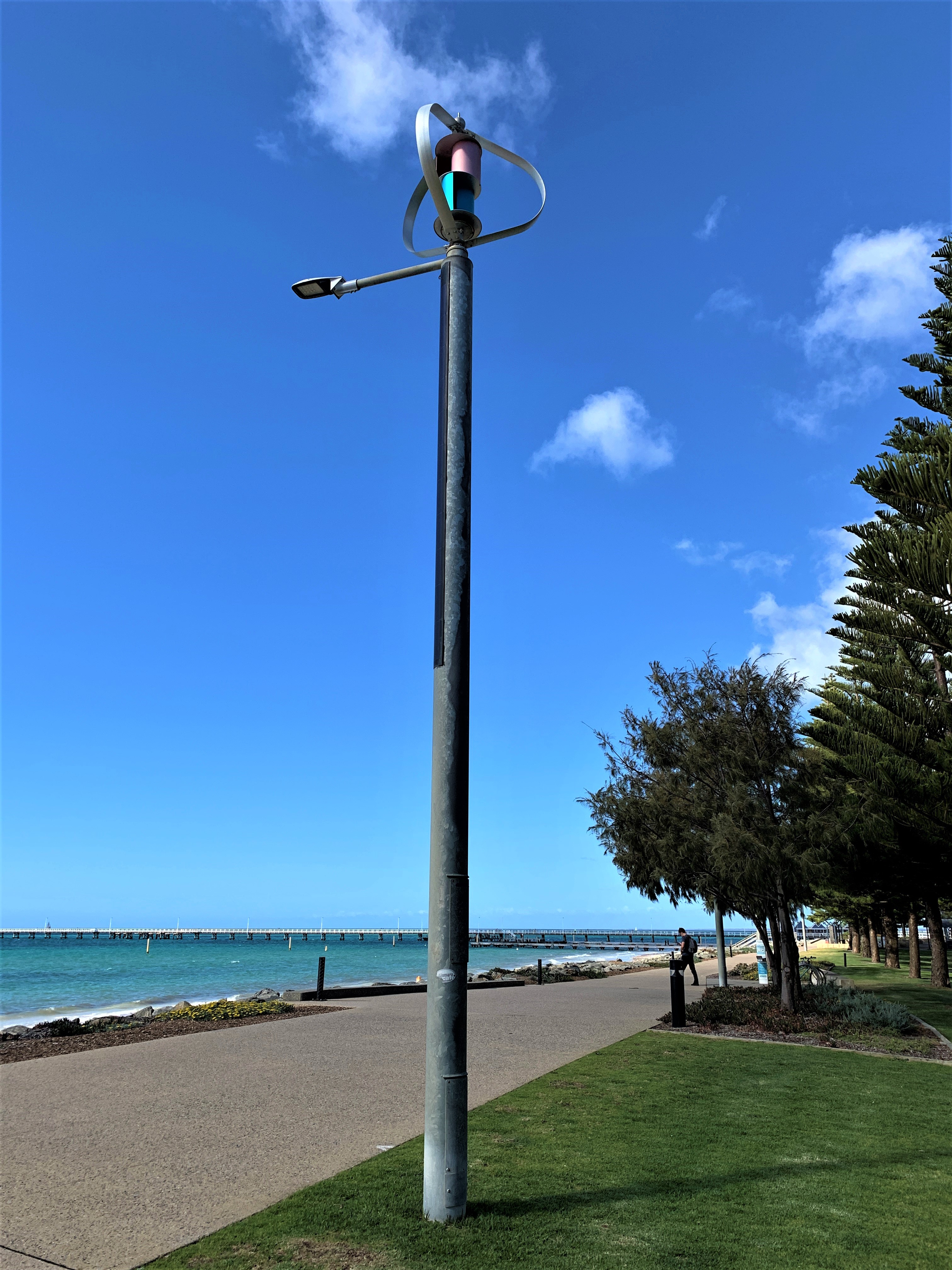 Wind turbine and solar panel on lamp, Australia