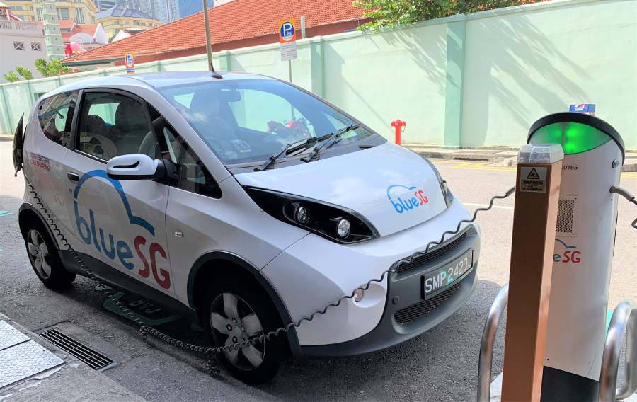 Electric car charging station, Singapore